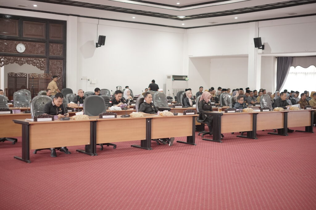 Rapat yang dipimpin oleh Wakil Ketua I DPRD HSS, H. Husnan, S.Ag, didampingi Wakil Ketua II, H. Muhammad Kusasi, SE, S.AP, MM, dihadiri langsung oleh Bupati HSS, H. Syafrudin Noor, SE, S.Sos, serta Anggota DPRD dan jajaran eksekutif.