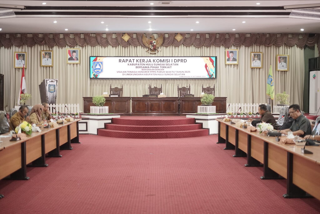 Kandangan, 16 September 2025 – Komisi I DPRD Kabupaten Hulu Sungai Selatan (HSS) menggelar rapat kerja bersama pihak terkait membahas usulan tenaga honorer Pegawai Pemerintah dengan Perjanjian Kerja (PPPK) paruh waktu tahun 2025 di lingkungan Kabupaten HSS.