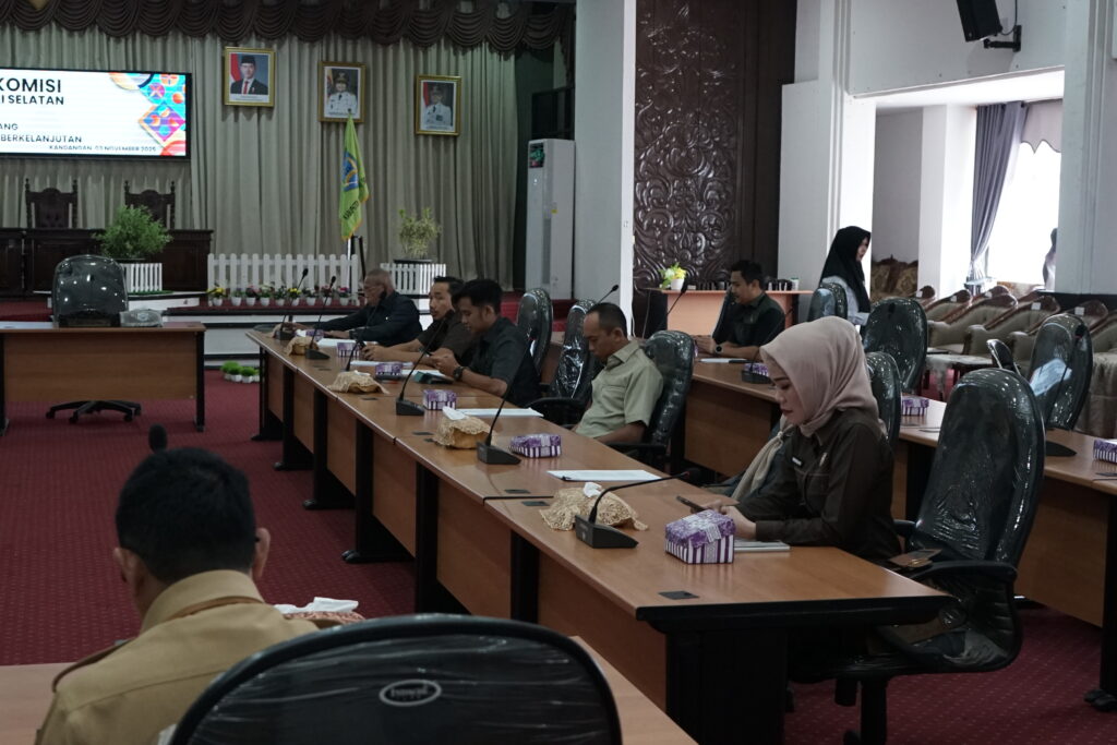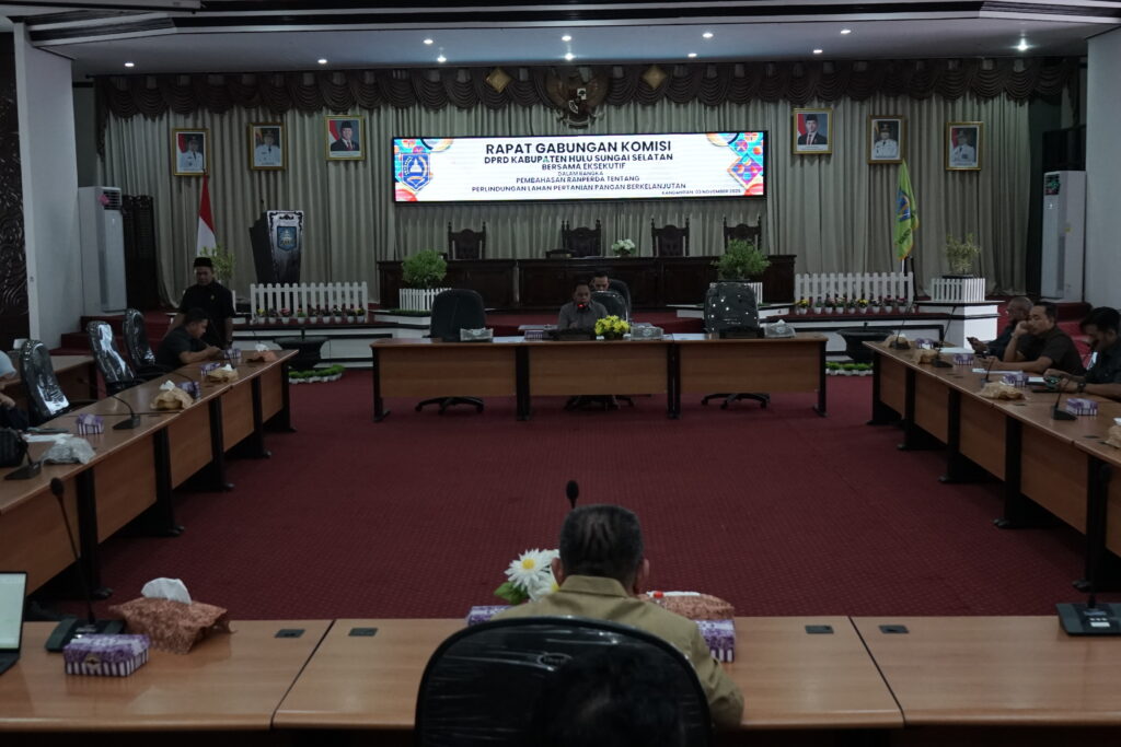 Dewan Perwakilan Rakyat Daerah (DPRD) Kabupaten Hulu Sungai Selatan (HSS) menggelar rapat gabungan komisi bersama pihak eksekutif dalam rangka pembahasan Rancangan Peraturan Daerah (Ranperda) tentang Perlindungan Lahan Pertanian Pangan Berkelanjutan (PLP2B), Senin (3/11/2025).