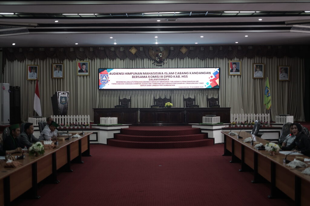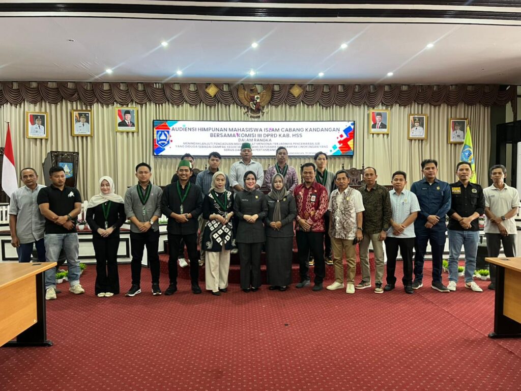 Kandangan – Jum’at, 19 Desember 2025, Komisi III DPRD Kabupaten Hulu Sungai Selatan (HSS) menerima audiensi dari Himpunan Mahasiswa Islam (HMI) Cabang Kandangan. Audiensi tersebut dilaksanakan dalam rangka menindaklanjuti pengaduan masyarakat terkait dugaan terjadinya pencemaran air yang diduga sebagai dampak aktivitas pertambangan batubara, serta dampak lingkungan serius akibat limbah pertambangan.